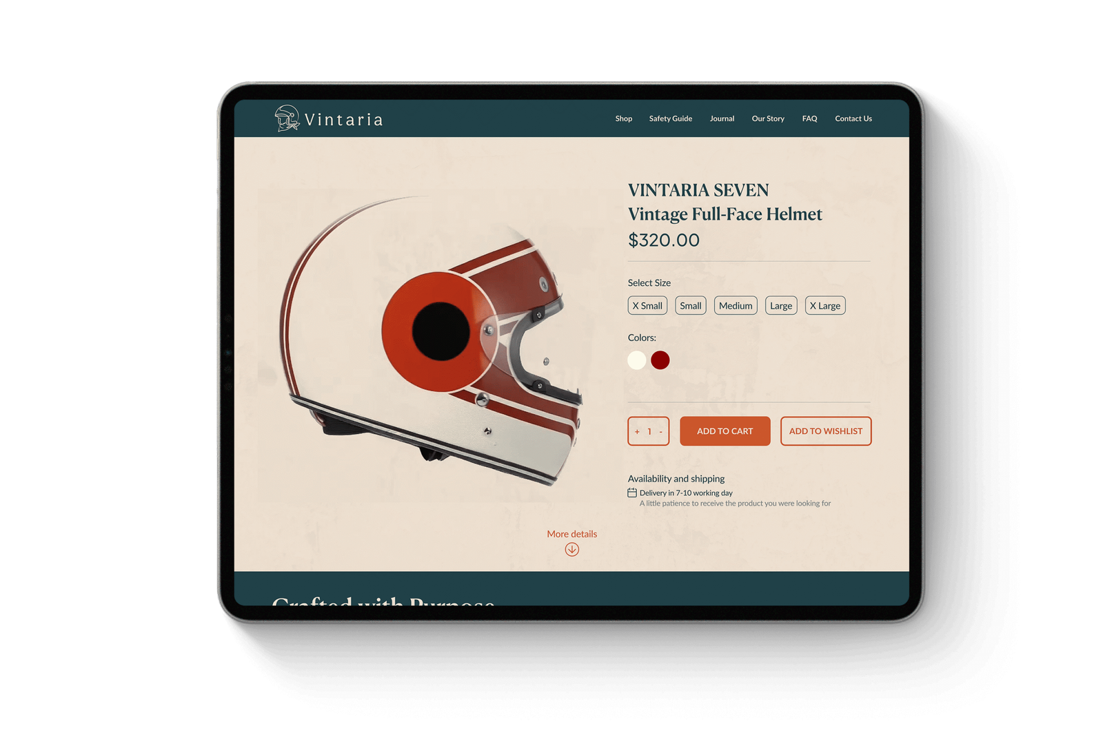 Designing a vintage helmet brand that combines emotional storytelling with a modern e-commerce experience.